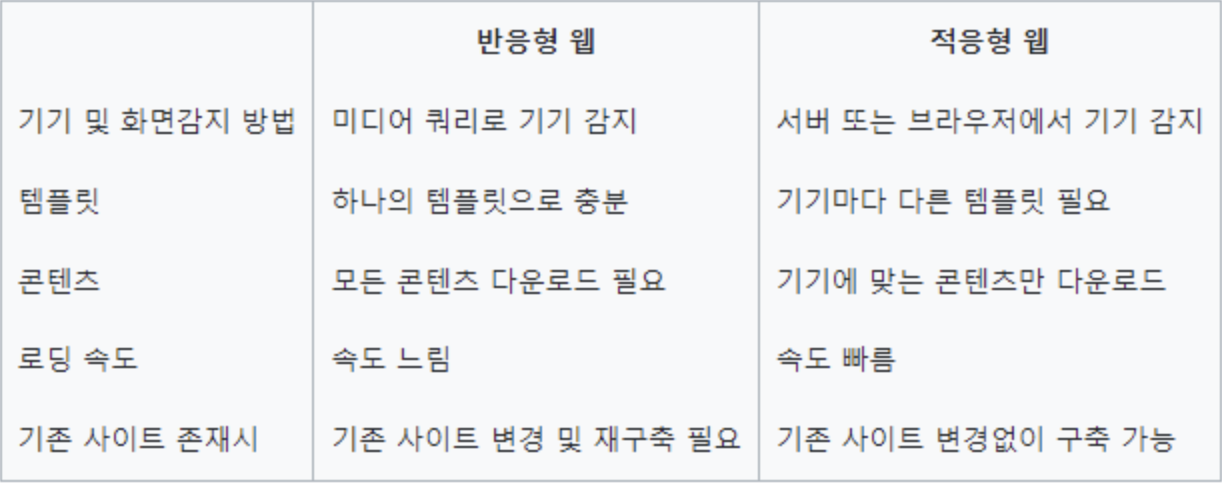 서버나 클라이언트에서 웹에 접근한 기기를 체크해 그 기기에 맞는 템플릿을 제공하는 개념이다.(HTTP GET 요청의 user-agent 헤더 정보)